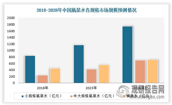 在细分市场方面■■◆,由于即饮场景受环境约束小,便携性高★◆,单价低,因此小规格瓶装水是行业主要构成部分。不过,近几年,中大规格瓶装水从饮用场景向泡茶、煮饭与佐餐等多消费场景拓展。因此,在多场景延展+居民健康意识不断提升下,中大规格在各规格瓶装水中市场规模增速最快★◆◆。根据数据显示,2018-2023■◆,我国中大规格瓶装水市场规模从232亿元增至424亿元,份额占比从15◆★■.2%提升至19.7%。